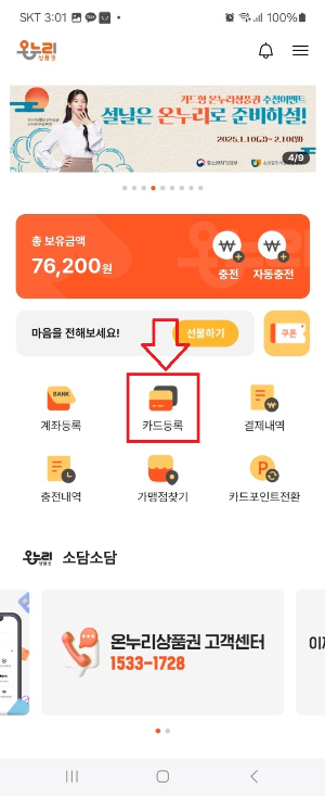 - '온누리상품권' 앱에 등록한 바로 그 카드로 결제
